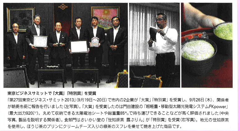 『広報させぼ(2013年11月号)』に、FKpower東京ビジネスサミット大賞受賞の、