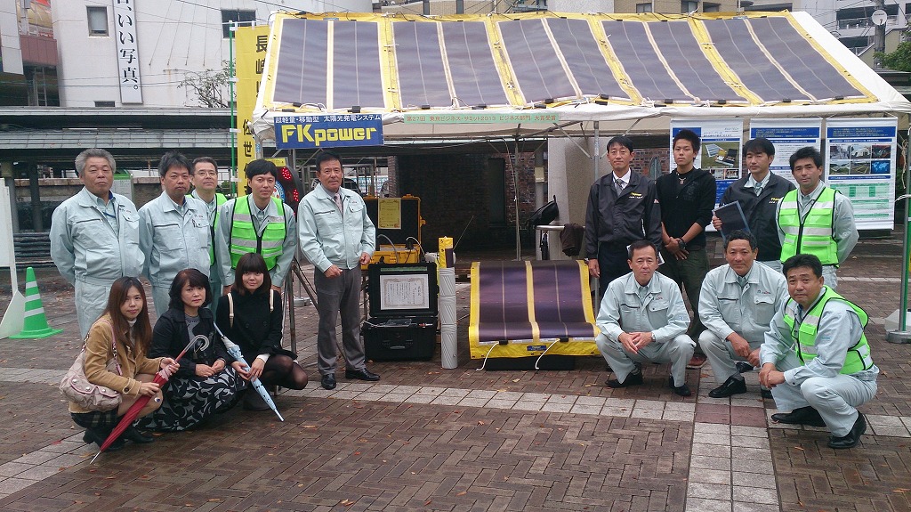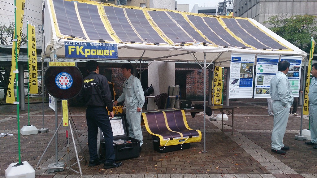 11/10『土木の日』イベントに参加しました 2025年7月10日2013年11月12日 by kadota_admin 11/10、佐世保島瀬公園で開催されました、 『土木の日』イベントに参加しました!! 各建設関連企業等が趣向を凝らし、市民の方との交流を図っておりました。 当社テントには、超軽量・移動型 太陽光発電システム”FKpower”を設置! 市民の方々に当社の製品を知っていただく良い機会となりました。 ご来場いただいた方々、関係者の皆様、ありがとうございました! FKpowerに関するお問い合わせはこちらまで↓ 連絡先:(0956)59-9215(環境部直通)